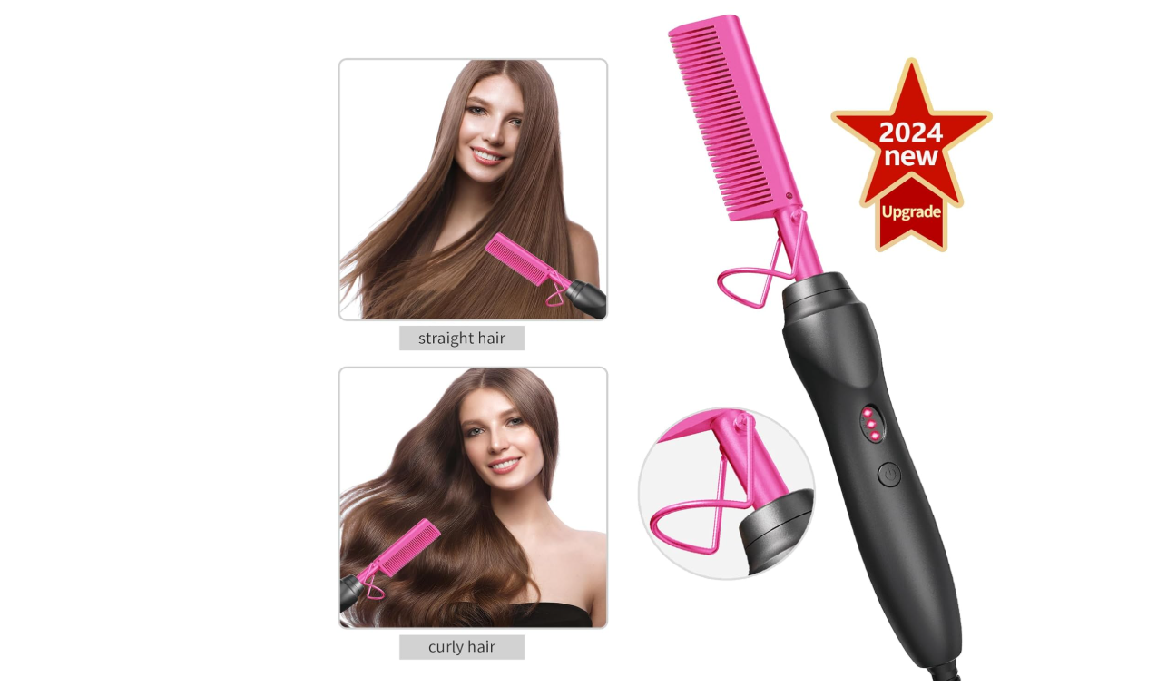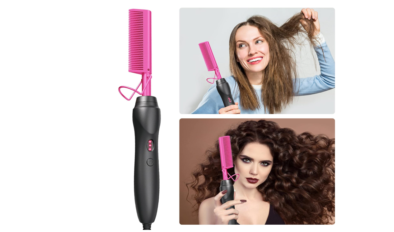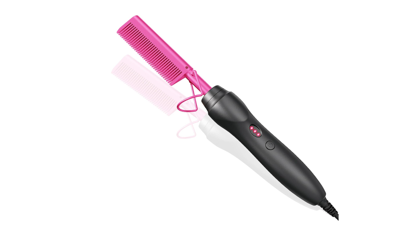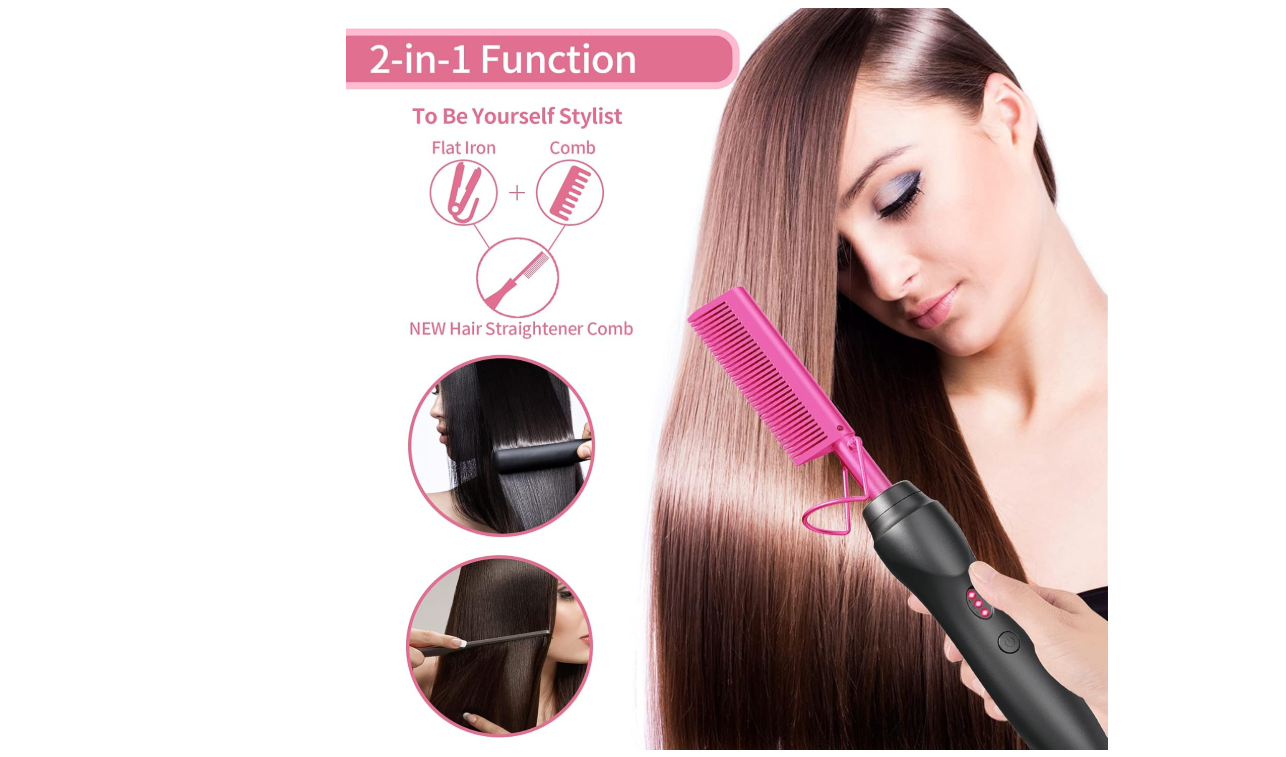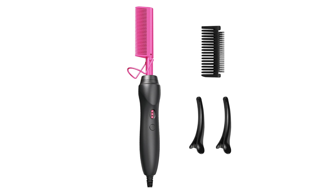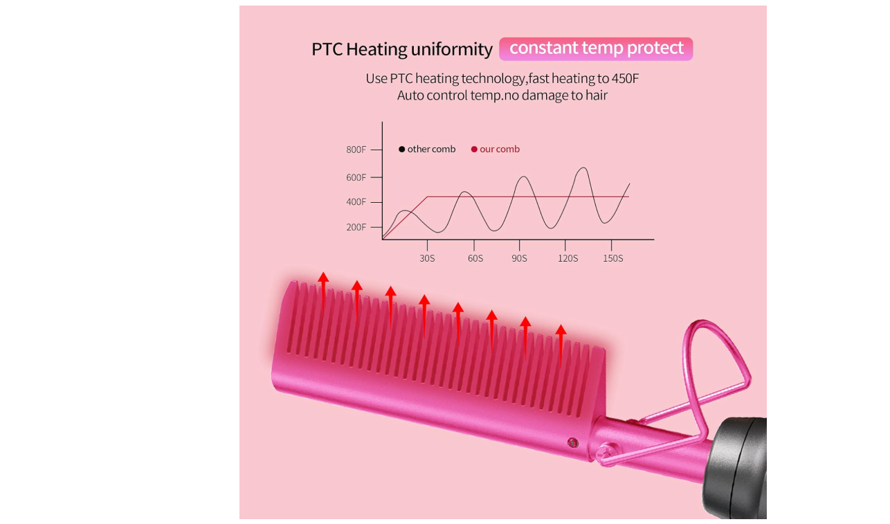 Easily straighten and style your hair with our Hot Comb Hair Straightener, featuring ceramic technology that ensures even heat distribution for smooth and shiny results. The heat pressing combs and curling iron are perfect for natural black hair, beards, and even wigs. Give the gift of effortlessly beautiful hair with our holiday edition in pink.